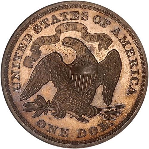 Desirable satin luster flows across the devices while proof radiance erupts from the smooth silver surfaces. That being the case, this date is also difficult to find fully struck. The present coin retains nice detail to the stars, both shields, and on just about every feather in the eagle from a strictly above-average strike. A very choice Proof.