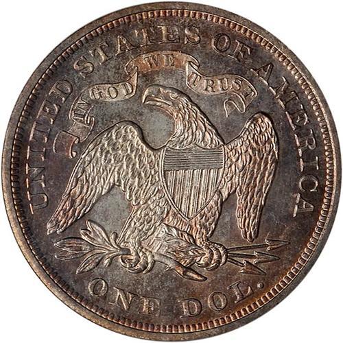Intensely pleasing original color captures the essence of this coin's "old silver" appearance; like a favorite antique, the satiny, chiefly lustrous surfaces of this Mint State specimen point to it having been set aside many decades ago, and left in its natural state without cleaning or mishandling. An especially bold strike on the stars and Liberty complements the boldness found on the eagle and legends of the reverse.