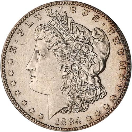 Both sides are remarkably lustrous with full-moon whiteness and a spray of golden brown to gray color at the rims. We'd put the luster at well north of 75%, making this an ideal coin suitable for a near-mint state silver dollar set. As collectors know, the very scarce '84-S becomes prohibitively expensive in choice Mint State grades.