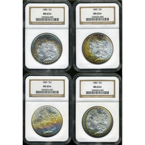 All NGC graded MS63*. Includes two obverse-only toners and two with toning on both sides. Lot of 4 coins.
