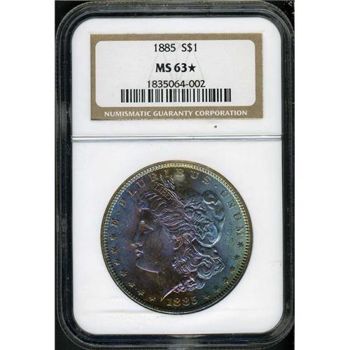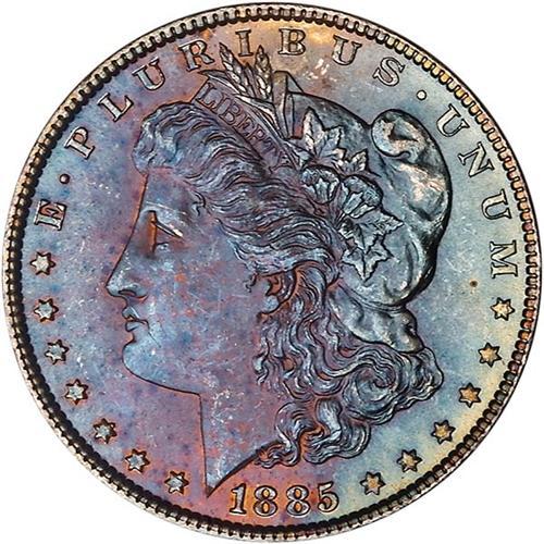 Raise your bids and increase your dividends by locking in this handsome purple and blue jewel of a toned silver dollar!