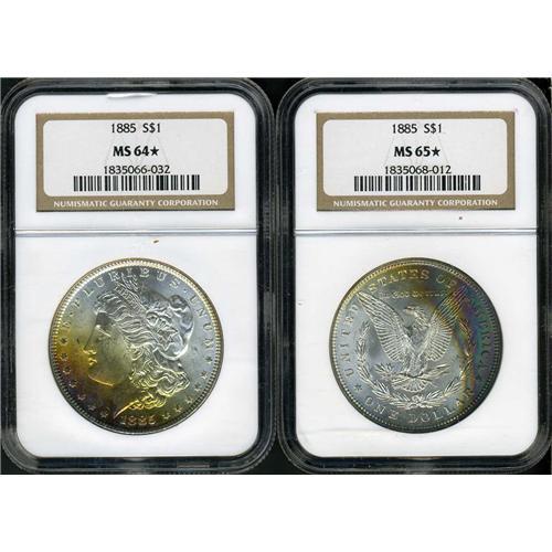 Obverse toned NGC MS64* and reverse toned NGC MS65*. Both with star designation by NGC for eye appeal. Lot of 2 coins.