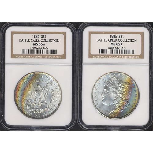 Includes one obverse toned 1886 NGC MS65* & one reverse toned 1886 NGC MS65*. Lot of 2 coins.