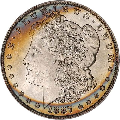Includes two obverse toned 1887 NGC MS65*. Minor toning on each reverse. Lot of 2 coins.