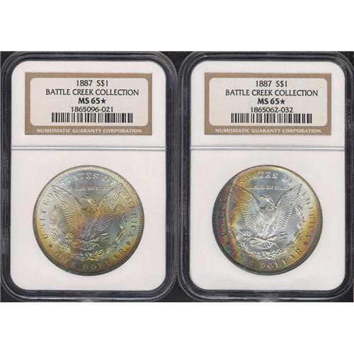 Includes two reverse toned 1887 NGC MS65*. Lot of 2 coins.