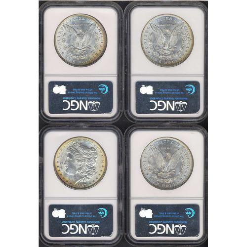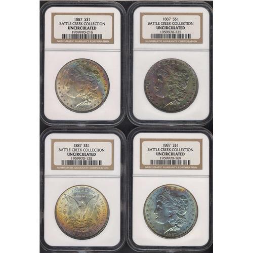 Includes three obverse toned 1887 NGC Uncirculated & a reverse toned 1887 NGC Uncirculated. Lot of 4 coins.