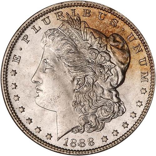 The surfaces are a vibrant silvery bright, with nothing subtle about the bright luster. Here, too, we are struck by the nice, convincing design detail for all areas of this important coin with not even the slightest amount of flatness on the centers. Some russet gold toning overlays the upper part of the obverse.