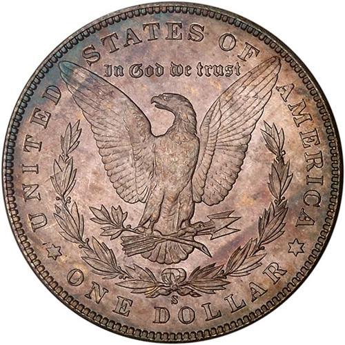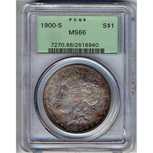 Deep, attractive toning spans both sides. This sparkling Gem boasts swirling cartwheel effects and uncommonly sharp striking detail for the issue. Need we remind bidders that a weak impression was left by the rebound of the (often dilapidated) dies that usually struck 1900-S silver dollars; however, in the present case, the opposite is true, the coin shows great detail and a clear, bold strike for the most part.