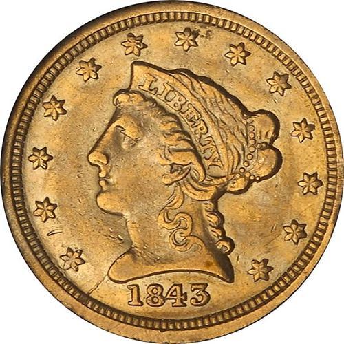 Lot 0398 1843-C $2.50 Liberty. Sm Date, Crosslet 4 ICG