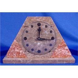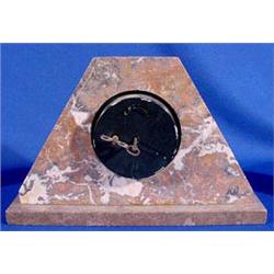 Polished Marble German Mantle Clock Set. Wind up German clock with polished stone case and pair of matching decorated side pieces. Ca. 1900. 13.5"w base, 8.5"h x 2.5"w. Est. $200 - $300.