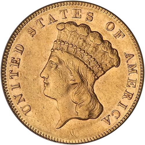 According to one researcher, during the mintage of $3 pieces and other coins it was a practice to separate the dies ever so slightly farther apart than need be, so that if a planchet was slightly overweight it would not cause die damage when the excess metal had little place to go (except in some instances to create a wire rim). The result is that the vast majority of $3 pieces show some trivial lightness in certain spots like the tops of the feathers in the headdress and on the ribbon bow at the base of the wreath on the reverse.