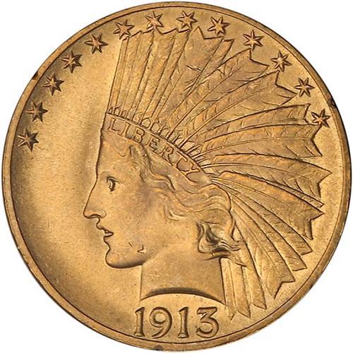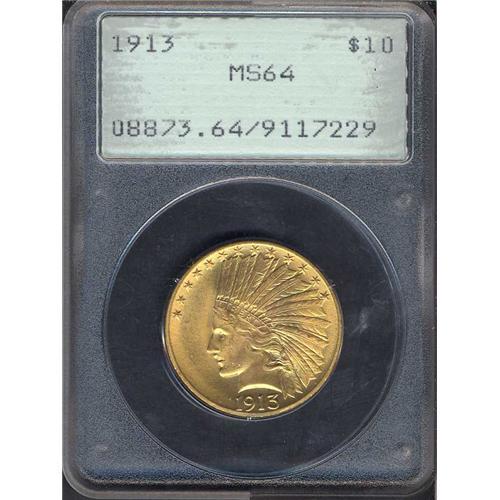 Early PCGS holder. A nice golden luster shoots from this choice Mint State 64 coin. Meticulous strike on every device, including the key feather vanes and barbs which show their intricate detail.