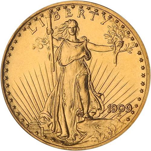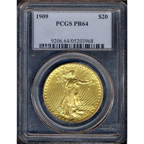 All proof twenties struck this year were of the Roman Gold variant of the matte proofing process. There were 67 proof double eagles officially struck in 1909. As such, the coin has an exceptionally solid rarity ranking. This piece displays a bright appearance for a matte proof. The surfaces have a pleasing brilliant yellow-gold hue. Furthermore, when closely examined there are noticed only a few small blemishes here and there, but these are scarcely visible to the untrained eye because of the overall flash and sparkle of the Roman Gold finish. It may come as news to the casual collector (but not to the connoisseur of Proof gold), but 1909 gold Proof sets were considered rare even at the time of issue since it took four years for Henry Chapman, a well-known coin dealer of the day, to acquire a set for the famous collector Robert Garrett.