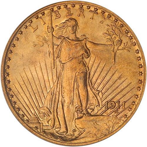 Despite the relatively low production of double eagles at Philadelphia this year (197,350 pieces), one could easily get the misconception that the 1911 twenty is relatively easy to acquire in Gem and better condition. Of course, in reality nothing could be further from the truth. The residue of surviving coins, especially of high quality examples, is extremely small and MS66 representatives are as scarce as anything.