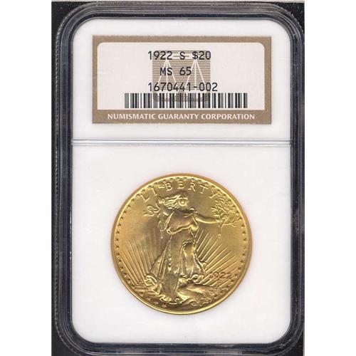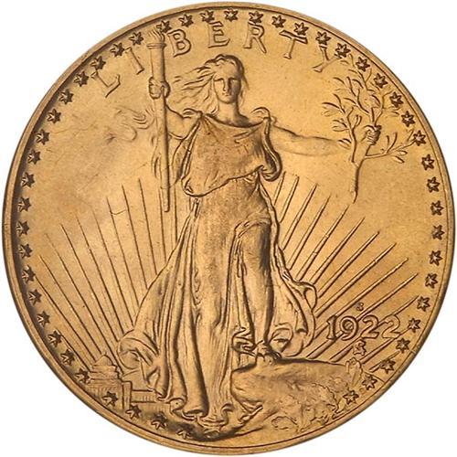 According to the Bowers double eagle reference book, "In modern times many 1922-S double eagles have appeared on the auction scene, in sharp contrast to the vaunted rarity of the variety in early times. Most are in Mint State 60 to 63 and anything finer remains a rarity. While somewhat over 1,000 examples are estimated to exist, the numismatic supply is very small, considering the great demand for Saint-Gaudens double eagles and also the fact that many have disappeared into the woodwork -- into the hands of investors for the most part who are not an active part of the coin collecting fraternity. It seems likely that most of the 1922-S coins were retained in the United States and melted in 1937. However, thousands were exported. This was an ideal situation for the numismatists, as foreign banks held in reserve many coins that would have been destroyed had they remained in America."