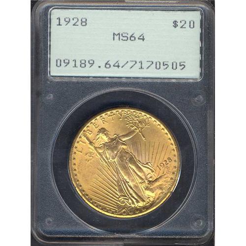 Early PCGS holder. Though MS64 quality won't win a championship for 1928 dated double eagles, this coin has everything going for it that the collector could desire in a coin of these caliber.