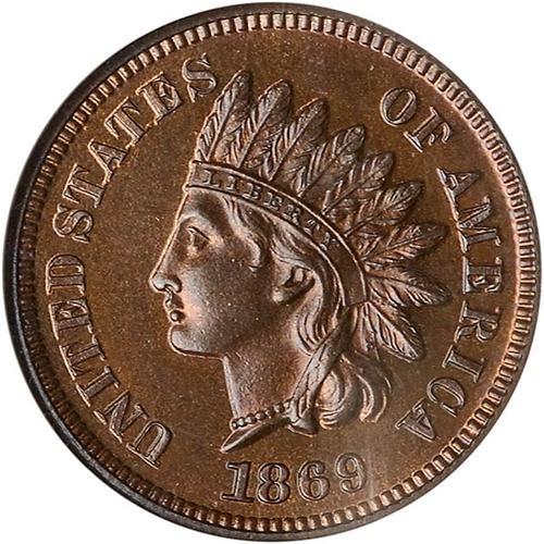 The scarcer dates in the late 1860s and early 1870s are found with moderately deep mirrors, which is a plus in anyone's book. It seems the reverse dies were normally held over and used for many years, being repolished many times throughout its life. Proof distribution for 1869 is estimated by the Bowers Indian Cent guidebook at between 850 and 1,100 pieces. "Most are red and brown. Some were sloppily made." Fortunately, the present example is very sharp and full featured, with no hint of "sloppiness" about it. A first-class gem!