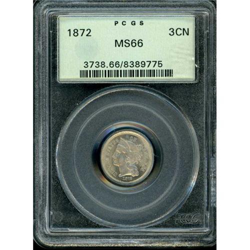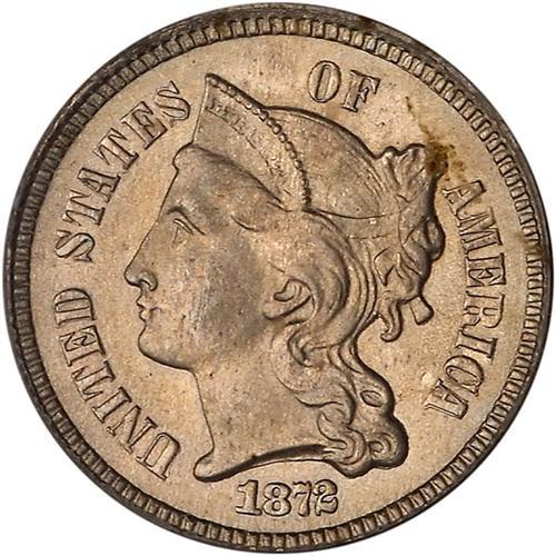 Pleasant silver-gray satin surfaces display lots of luster. Since our observation is that this 1872 issue is rarely fully struck, then this sharp coin has every suggestion of precision manufacture as seen in the coronet and hair, the wreath as well as the vertical lines of the Roman numeral.