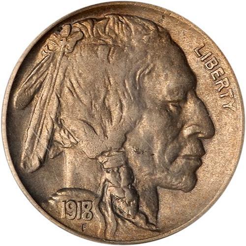 Collectors of this series well know that the 1918/7-D is the most eagerly sought variety in the buffalo nickel herd of dates. Research has come to the conclusion that this overdate was created in the Engraving Department at the Philadelphia Mint sometime in late 1917. At the time, the Mint was making dies for both 1917 and 1918-dated nickel production. Since a working die takes two or more impressions from a working hub before it is ready for use in the coining press, it is understandable how this overdate was created. One of the working obverse dies that had already received an impression from a 1917-dated working hub, then received a second, but from one dated 1918. Whether this was done accidentally or intentionally is not known, but we do know that this obverse was shipped to the Denver Mint and used to deliver a small portion of the 8.3 million-coin delivery recorded there in 1918.