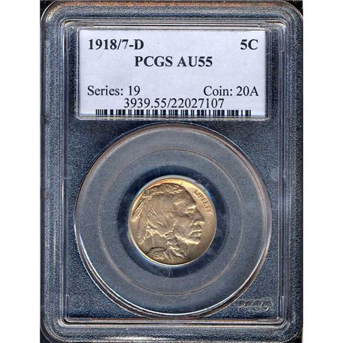 The 1918/7-D is rare in all grades, with a choice About Uncirculated 55 example of this coin's caliber and originality the most prevalent range requested among collectors. The number of Mint State coins extant is a matter of conjecture, high prices often preclude even the more eager collectors from obtaining one in this condition. This handsome coin represents the finest in technical quality that one will probably ever have the opportunity to acquire for an AU55 overdate nickel. Both sides are as we said original in appearance with light-gray toning that yields to pale golden shadings around the devices. The strike is pleasingly sharp in most areas, with neither side revealing any outwardly distracting carbon flecks or abrasions other than a small line across the Indian's features. Lustrous and attractive, this coin is destined to create a nice stir among bidders when the time comes to establish a price for it.