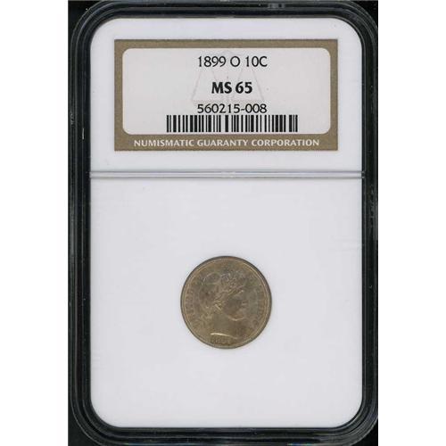Bright silver color erupts through the original toned surfaces untouched by heavy marks or streaking. An appreciable strike as well, making this an advantageous coin for the focused collector of high-grade Barber dime coinage. Taking stock of another key aspect of the grade, this piece has splendid eye-appeal throughout from the careful way it was stored by its previous owners. A scarce New Orleans mint dime.