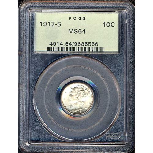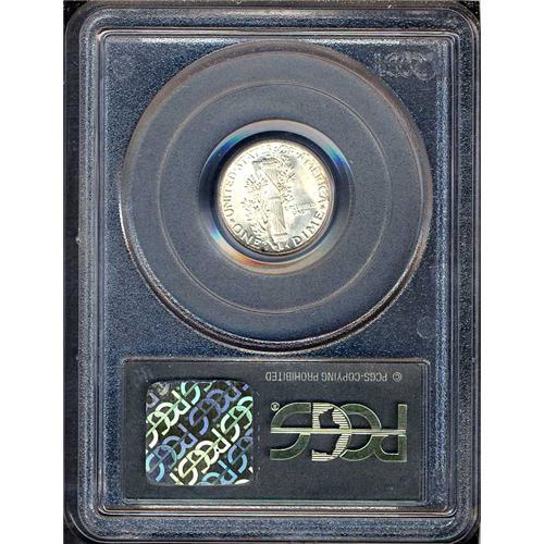 The wintry blast of white luster is utterly pleasing on this handsome '17-S Mercury dime. A dullish impression was left after the recoil of the dies that struck this, but only on the very top part of the two cross bands on the reverse; elsewhere, the strike isn't even close to "dull" but is, instead, razor-sharp.