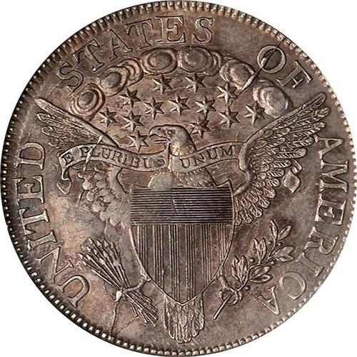 A coin displaying dark gray, possibly "applied" toning on either side, with underlying surface dull but within the looser parameters of MS61 quality as defined by most grading systems. This is the Pointed 6 variety, with stems, and is listed separately in the Guide Book of United States Coins, with the rounded 6 and no stem varieties also popular collector items. The strike is acceptable with a mostly sharp eagle, excepting the area of the left wing (as the viewer sees it) and the left side of the shield, where the metal failed to completely enter the die recesses. Rims are choice without bumps or nicks.