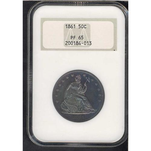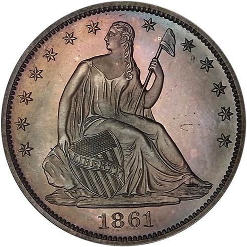 The 1861 is an hugely popular Proof issue due to the scarcity in all grades of its business strike counterpart. When offered, the 1861 is apt to grade no finer than Proof 64 with obvious hairlines or marks. Gems are rare, and nicely toned Gems like this are all but unobtainable at the two major grading services.