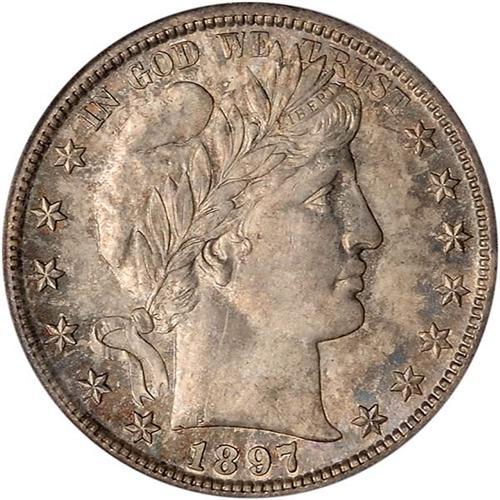 The 1897-S is one of the more difficult semi-key dates in the Barber half series to acquire in choice Mint State quality. Slightly under a million pieces were produced, and today only a handful survive, although a few MS65 and better examples are known. This is obviously one of the better preserved Mint State 64 PCGS coins graded it behooves bidders to mark their catalogs to bid assertively. As one would expect, the grade and desirability of this coin is directly linked to its choice, uncorrupted appearance: the dominant dusky gray patina is interspersed with light milky gray color over both sides.