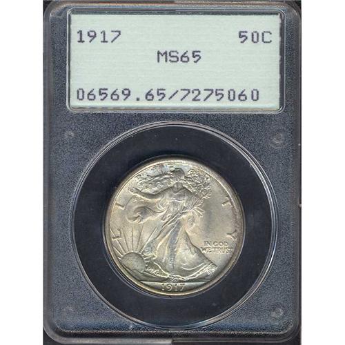 Distinguished by its bold relief and frosty elegance, the coin presented here is in an early holder. It has naturally toned. It has plenty of eye appeal. It isn't expensive, either, as would be one of the branch mint 1917 halves. Just the ticket for the quality minded buyer of gem walking Liberty half dollars.