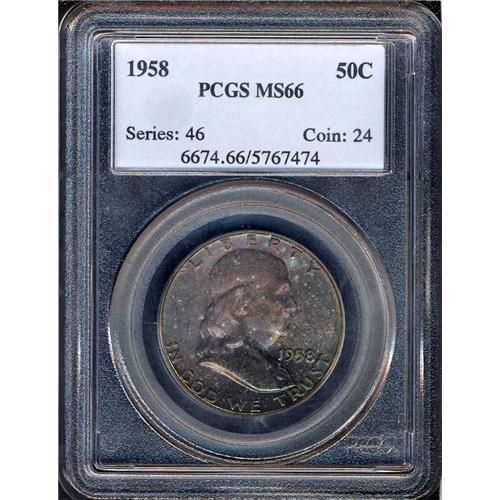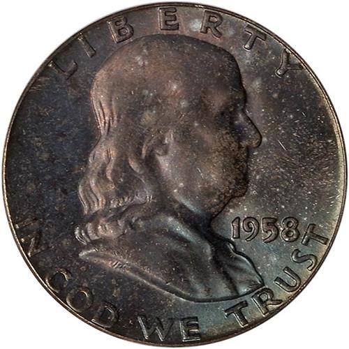 Well toned and beautiful; well placed to become a part of a toned set of Franklin half dollars.