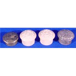 Antique miniature box lot. These four boxes appear to be inserts. Two are made of pressed metal the other two appear to be gutta percha. Nice old Victorian boxes. They measure around 1.25"d x 1"h. Est. $80 - $120.