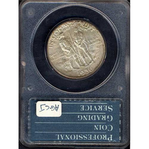 Early PCGS holder. A satiny original specimen, lightly toned, uncleaned, whose gem quality stature makes it eminently suitable for a Commemorative half dollar type set.