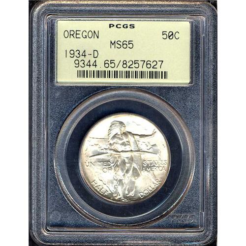 This is a lovely, radiant Gem, both sides being essentially untoned with frosty, silver-white luster. Struck with exactitude by the dies and a nice accompaniment for the other 1934-D Oregons in the sale.