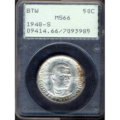 The surfaces are bright with moon-glow white luster and show none of the muting often seen on some 1948 issues; a dash of brownish toning off to one side barely imposes itself over the heavy frost.