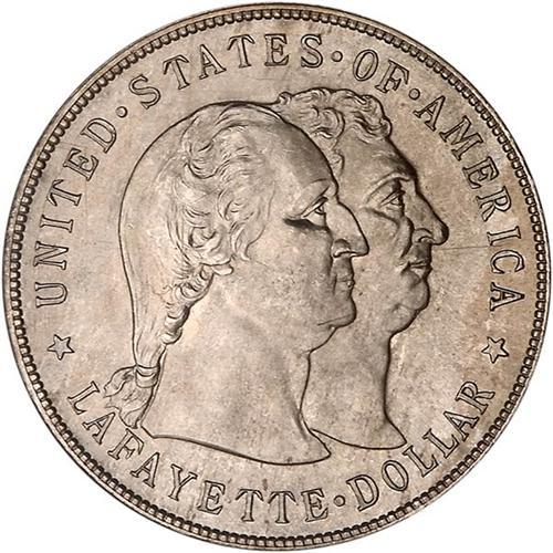 To anyone who may give a look of inquiry in learning that America commemorated a French adventurer and Revolutionary War hero on its coinage, we have this to report: America's first Commemorative Silver Dollar was by Charles E. Barber after an engraving of Houdon's bust of Washington. On the reverse, Barber depicted the Lafayette equestrian statue at the Paris Exposition of 1900. Lafayette Dollars were sold to defray part of the cost of completing Paul Wayland Bartlett's statue of the French General, then under construction in Paris for display at the exposition. Out of an authorization for 50,000 pieces, 36,000 were sold, the remainder being melted.