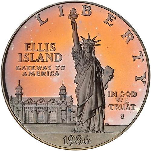 Wonderful deep rose-gold and purple-blue hues grace this beautiful Statue of Liberty commemorative.