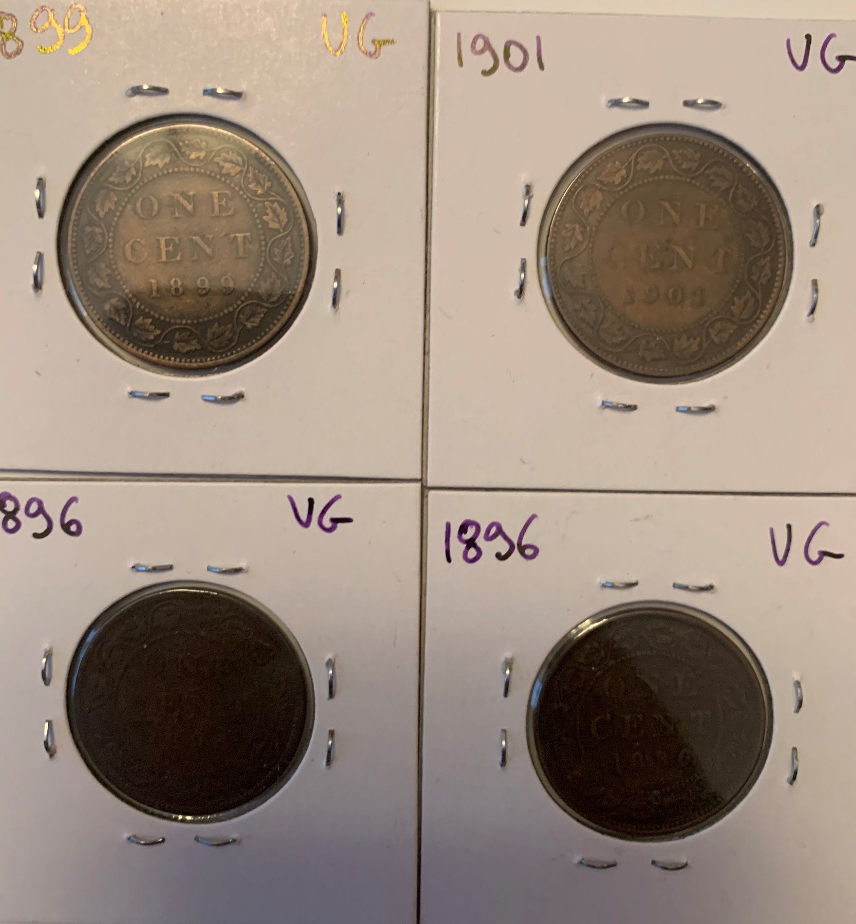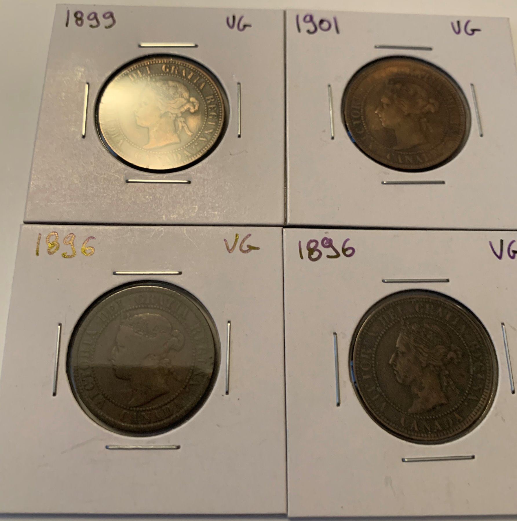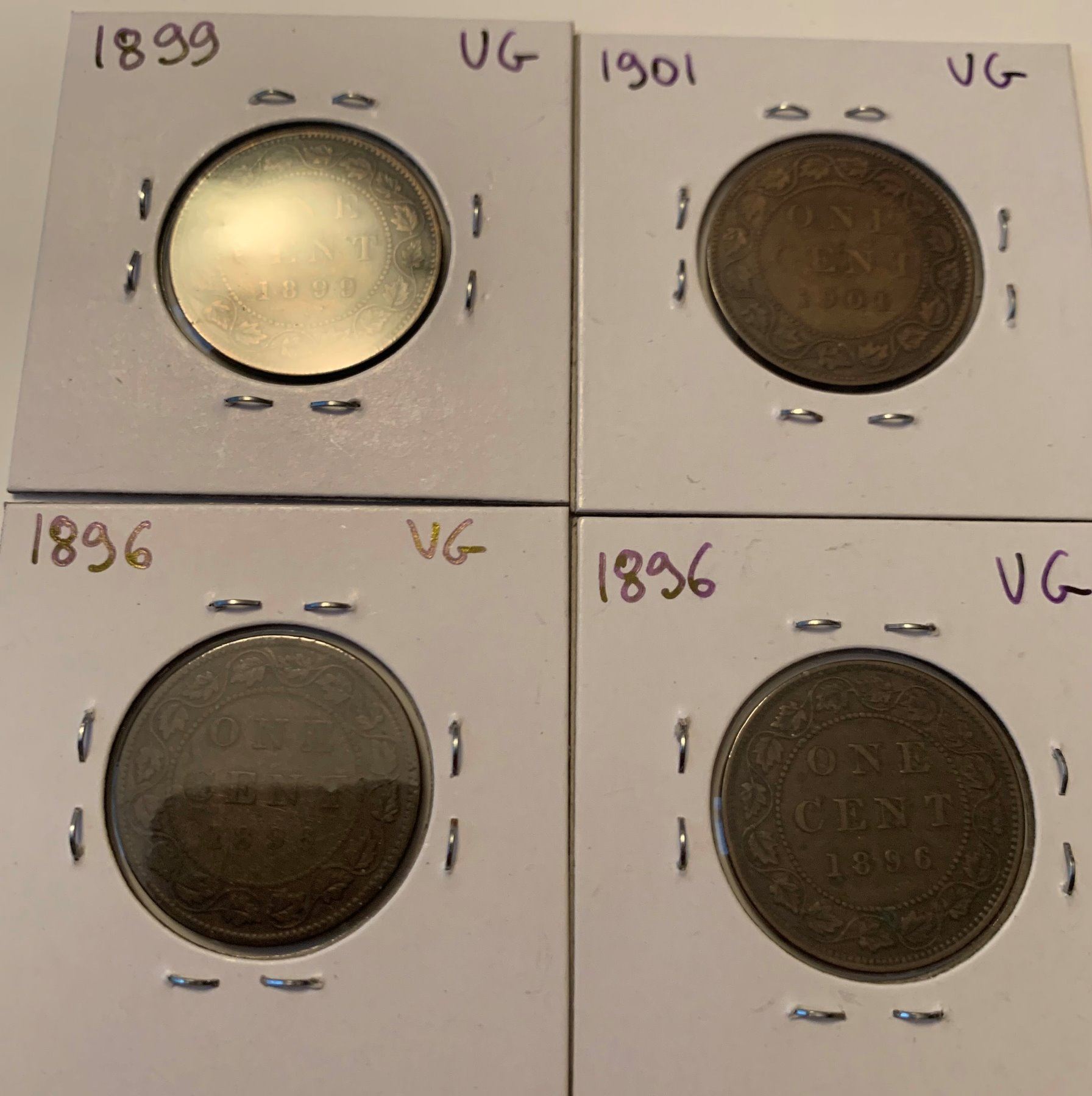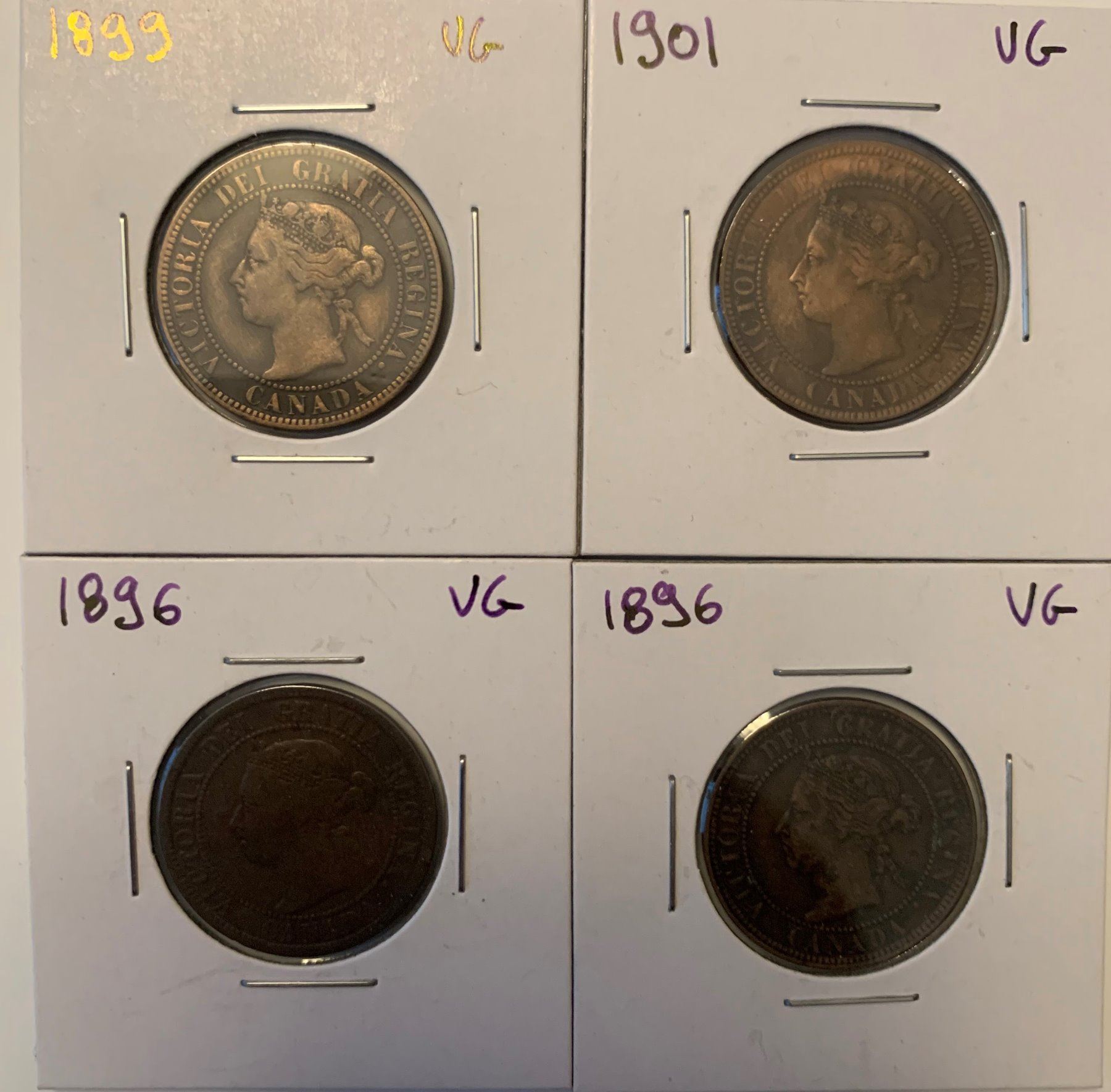 Lot 0f 4 Canada One Cent 1 Penny Queen Victoria Large Cent 1896 (2), 1899 and 1901 Beautiful Coins