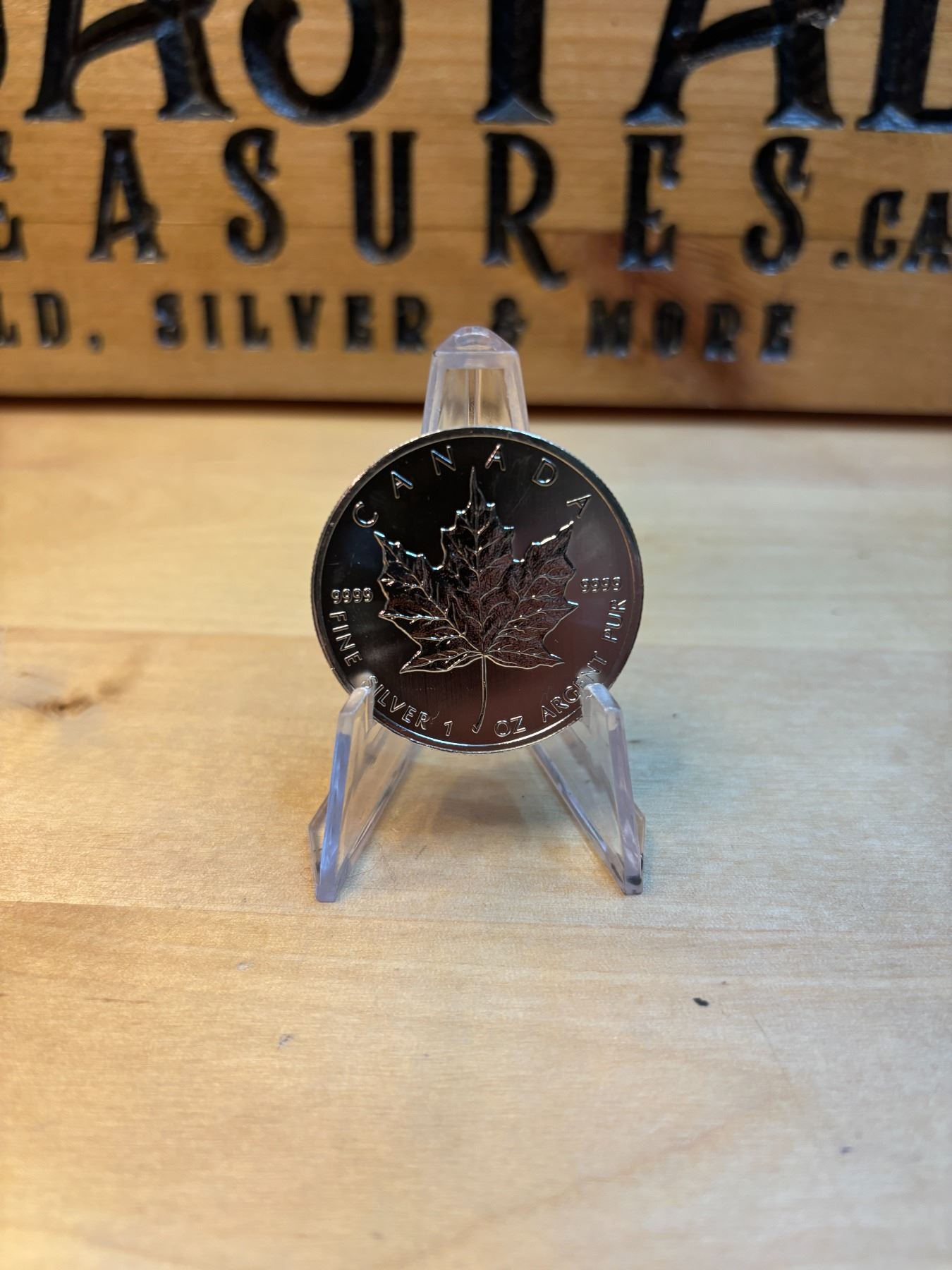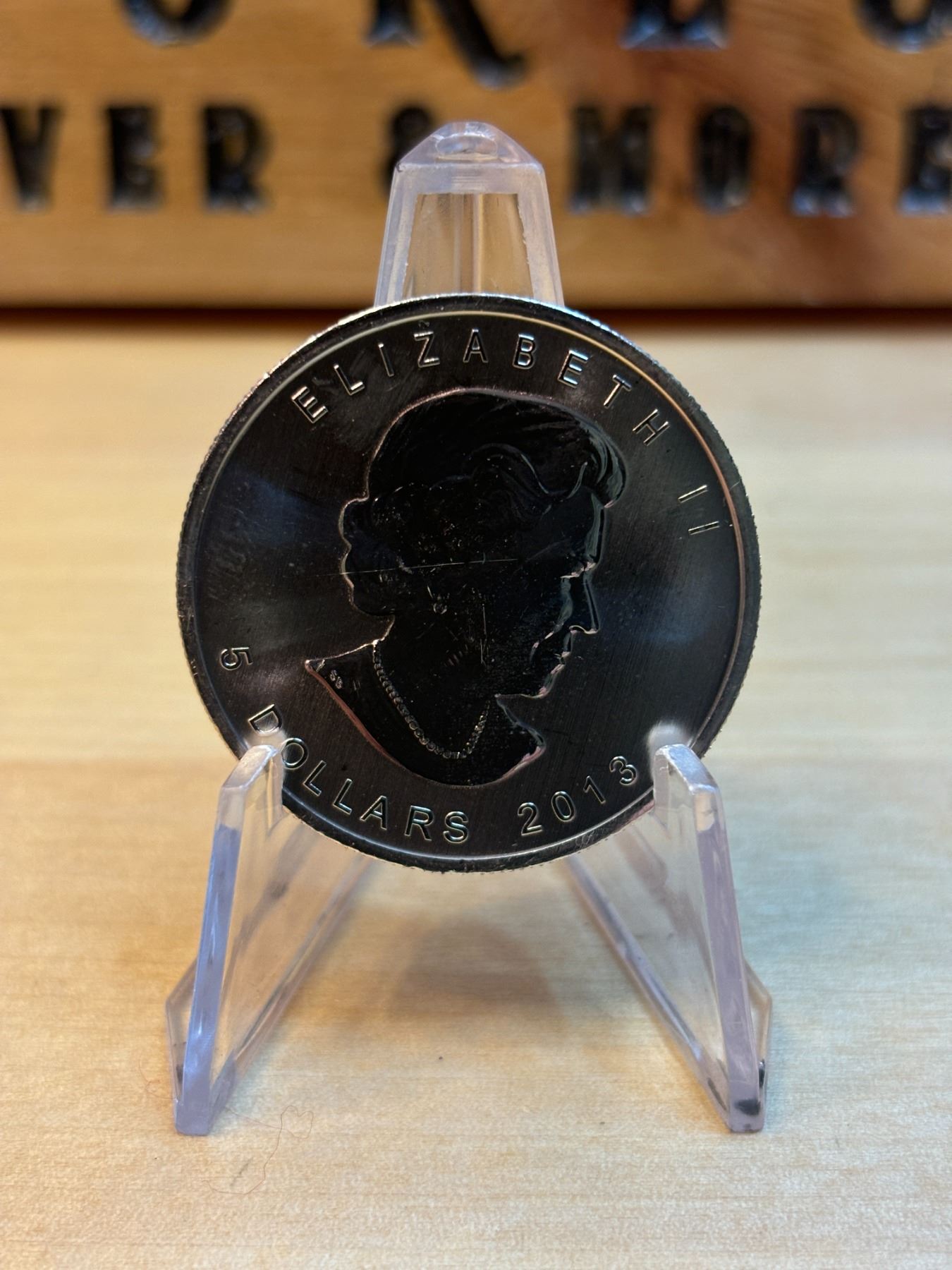 A 1 oz Canadian Maple Leaf Silver Coin from 2013 is a highly regarded bullion coin, crafted with 99.99% pure silver. Featuring the iconic maple leaf design on the reverse and an effigy of Queen Elizabeth II on the obverse, it is a staple of global silver coinage. These coins are popular among investors and collectors alike, offering both the security of a government-backed product and the beauty of Canadian craftsmanship. The 2013 coin, like others in the series, holds its value primarily based on the price of silver, though its premium can vary depending on market demand and its condition.