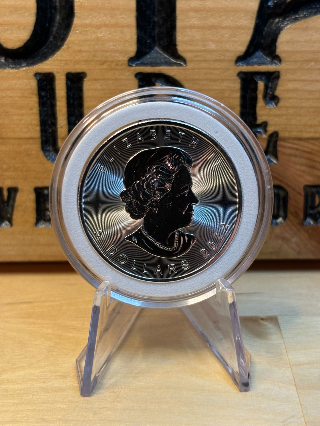 The 2022 1 oz Canadian Silver Maple Leaf is a .9999 fine silver coin featuring King Charles III on the obverse and the iconic maple leaf on the reverse. With advanced security features and MINTSHIELD™ protection, it’s perfect for collectors and investors.
