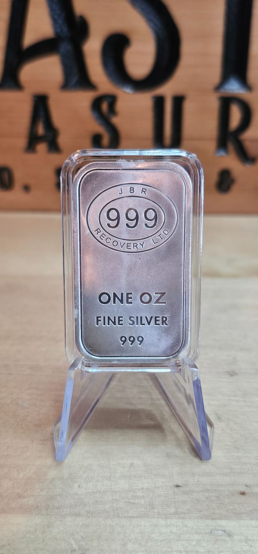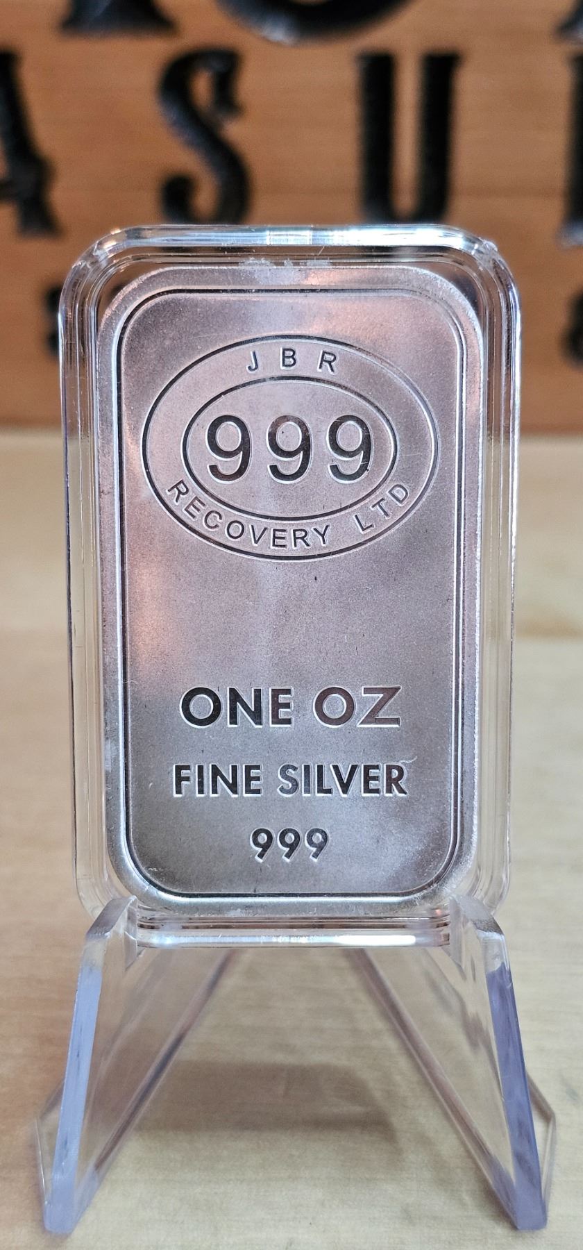 The 1 Oz Silver Bar JBR Recovery is a striking piece crafted from .999 fine silver, showcasing the distinctive JBR Recovery logo. With its sleek design and high purity, this bar is not only a solid investment but also a unique collectible, perfect for those who appreciate quality and craftsmanship in their silver assets.