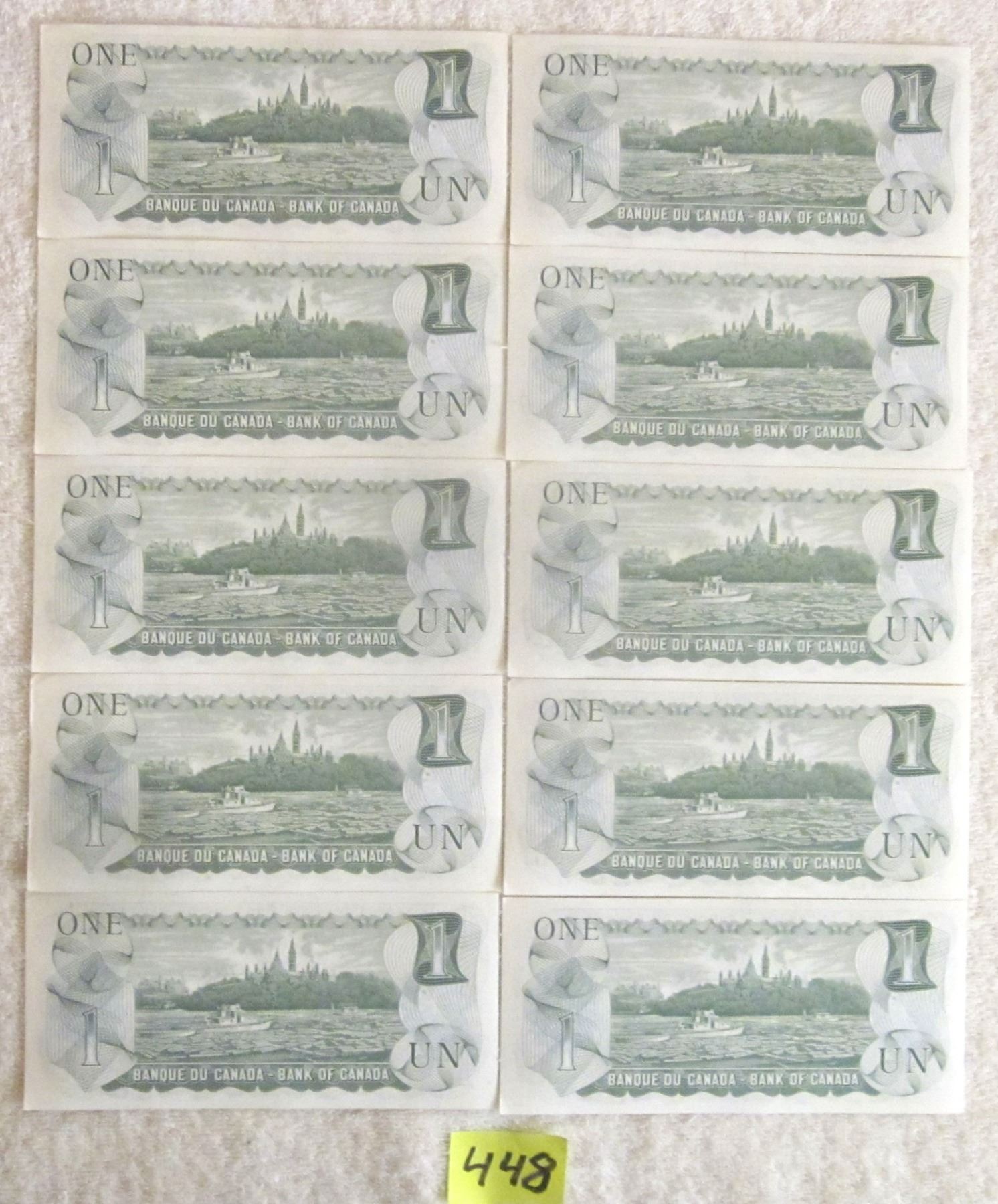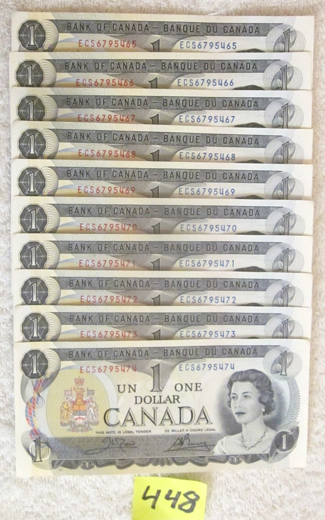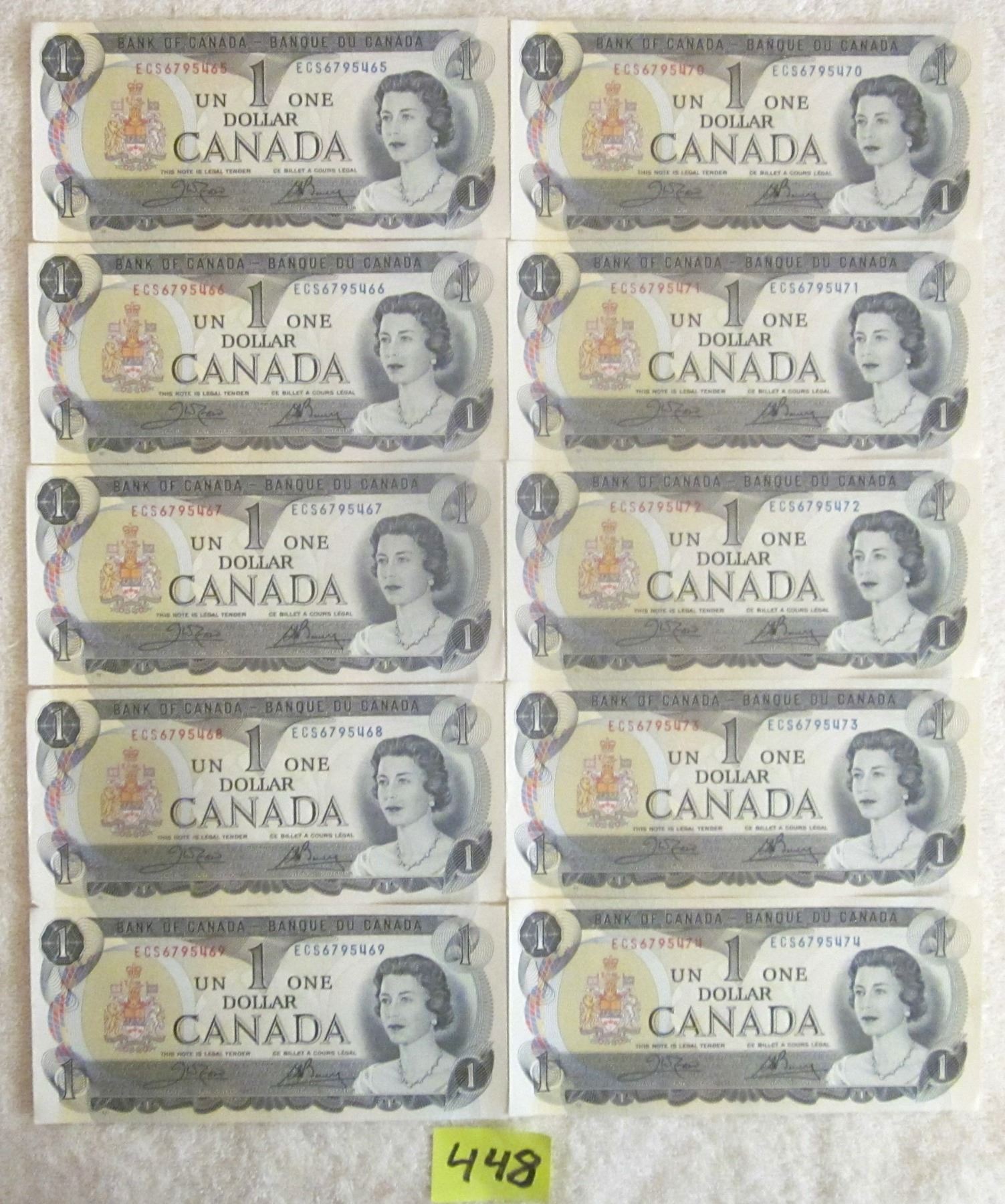 Lot 10 1973 Bank of Canada Uncirculated consecutive #'s $1 bill/bank notes ECS6795465-ECS6795474