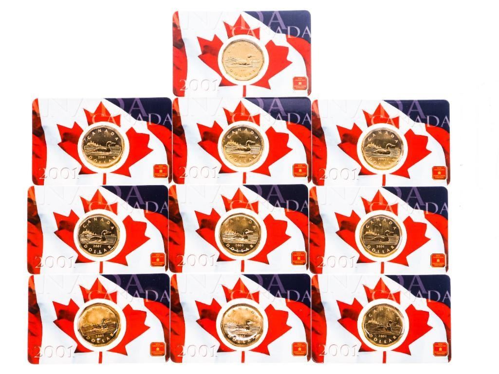 Lot 10 Canada 1981 Loon Dollar Coin - on Display Card UNC -RCM-1006711