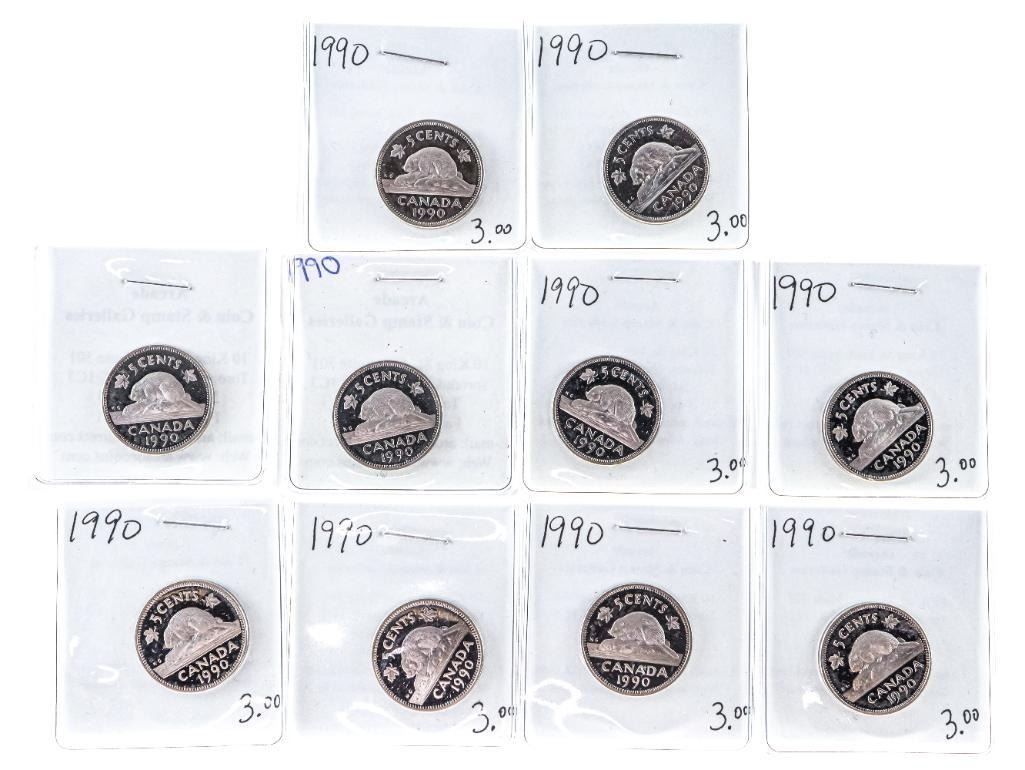 Lot 10 Canada, 1990 Beaver Proof Five Cents