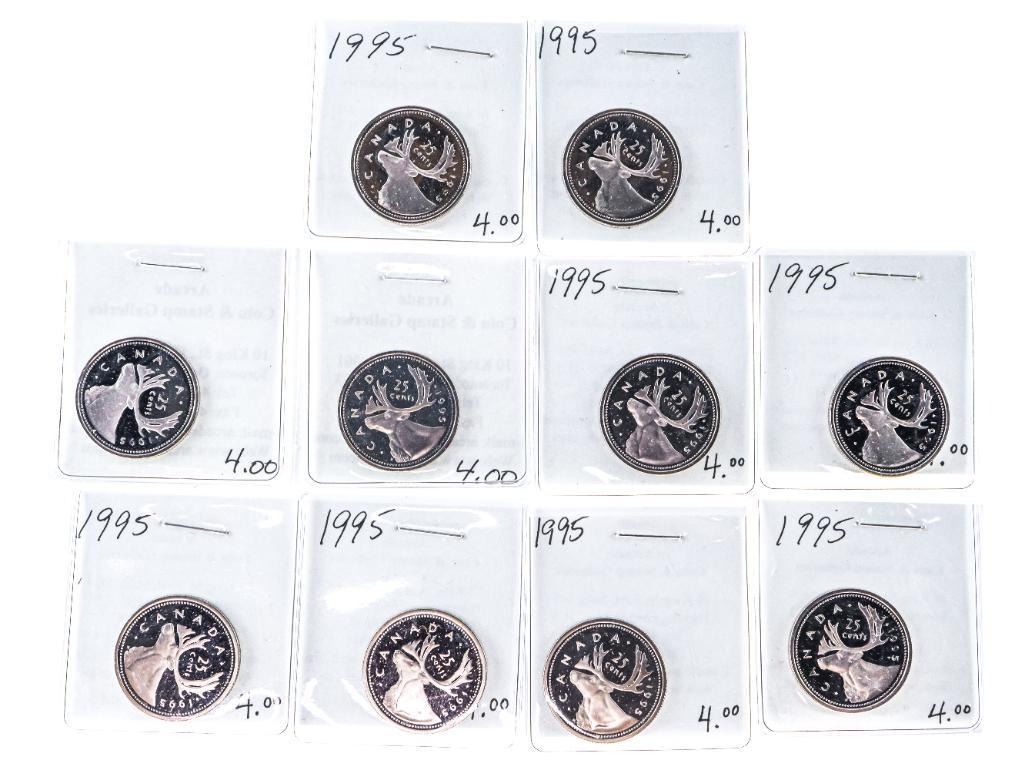 Lot 10 Canada,1995 Proof 25 Cents Caribou-1006095