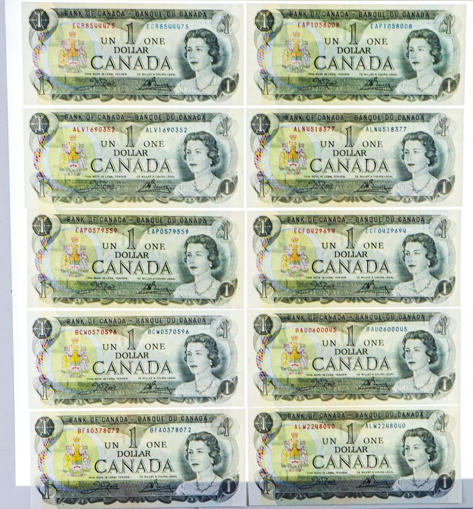 Lot - 10 x Canada 1973 One Dollar UNC - 10 Different Prefixes