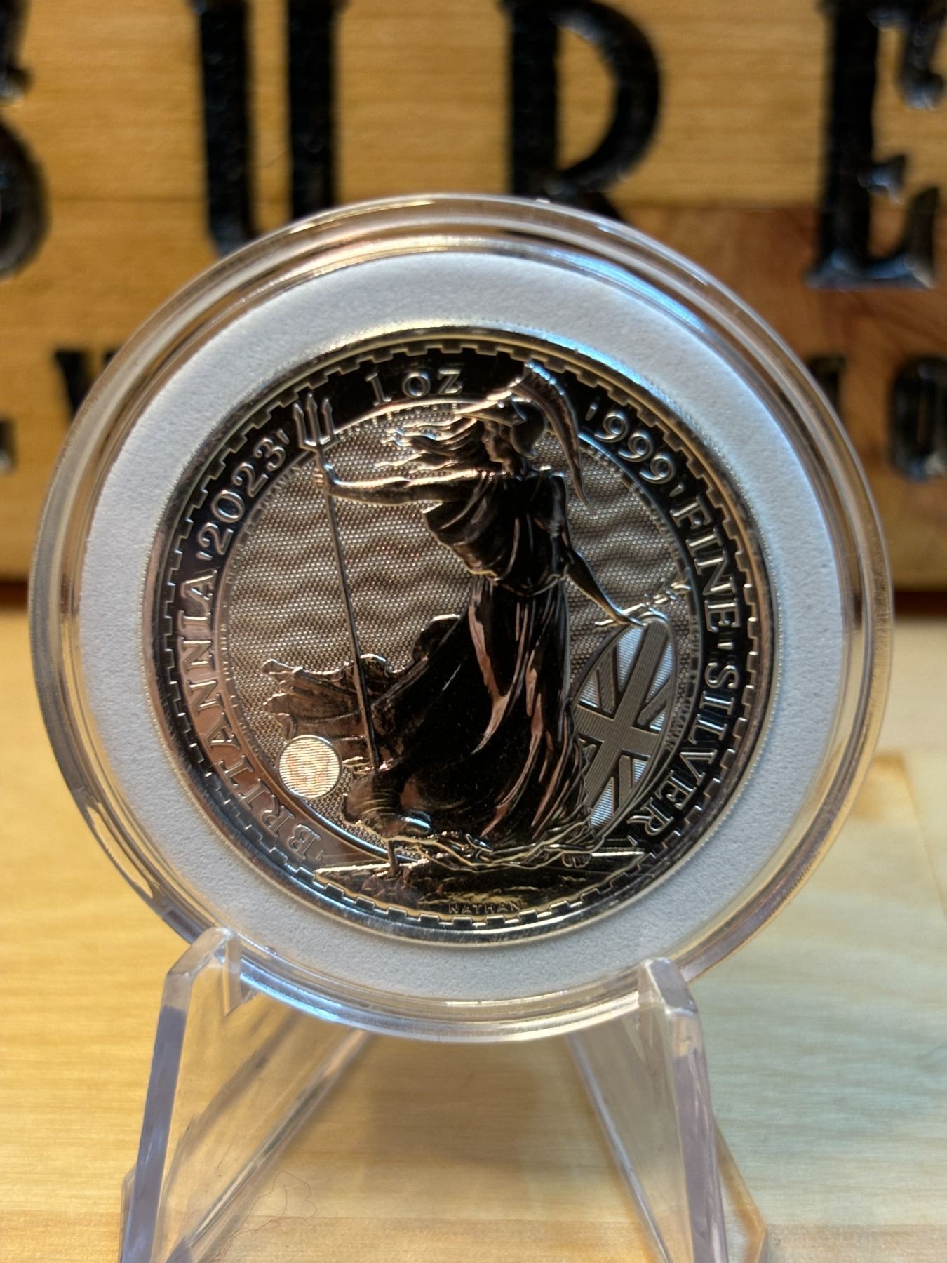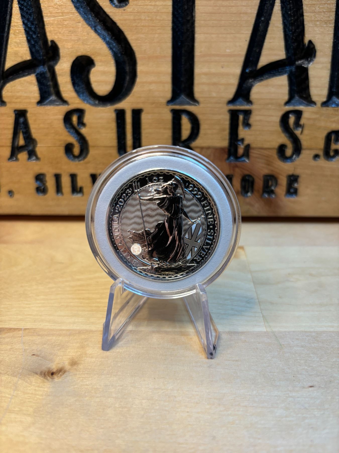 The 1 oz Britannia 2023 Silver Coin is part of the popular Britannia series, produced by the Royal Mint. It contains 1 ounce of .999 fine silver and features the iconic image of Britannia, symbolizing strength and resilience. The 2023 edition features an updated design with enhanced security features, such as a new background wave pattern and a holographic foil that changes in the light, making it more difficult to counterfeit. The coin is widely sought after by collectors and investors alike.