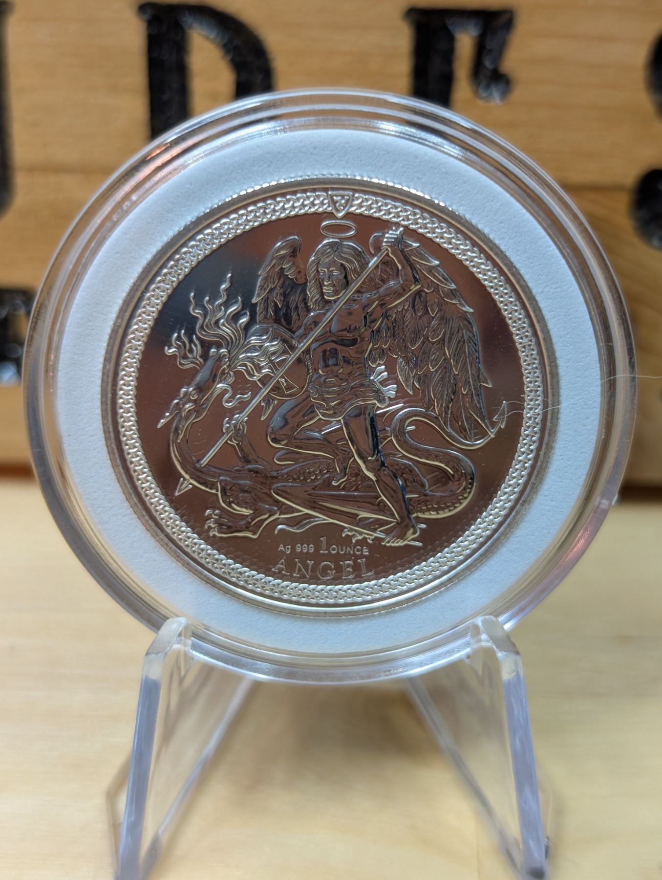 The 1 oz Isle of Man Angel 2024 silver coin is made from .999 fine silver and features the iconic image of a winged angel, a design that has been part of the Isle of Man's coinage for several years. Known for its stunning artwork, the coin is popular with collectors and investors alike. The value is influenced by the current silver price and demand for the 2024 edition.