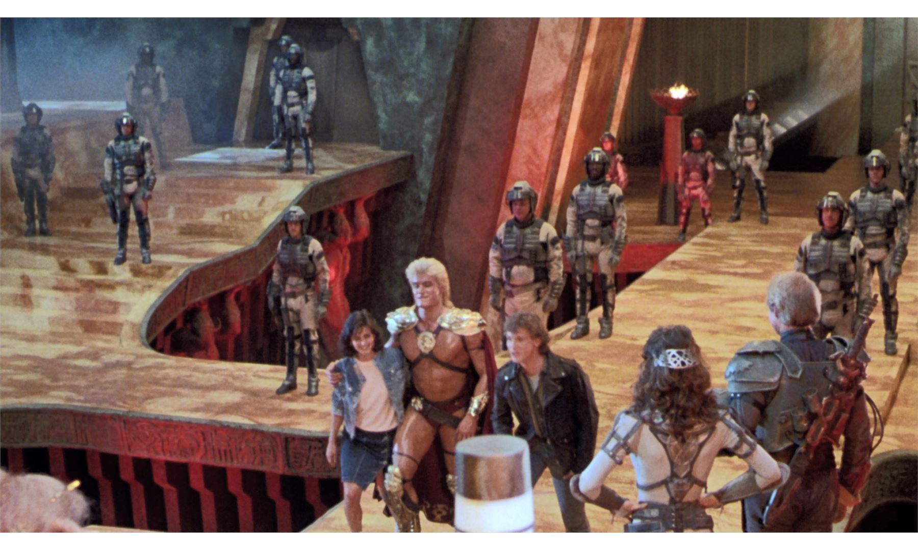 MASTERS OF THE UNIVERSE (1987) - Eternian Soldier Uniform - An Eternian soldier uniform from Gary Goddard's fantasy adventure Masters of the Universe. Eternian soldiers wore their uniforms in the aftermath of the battle with Skeletor's (Frank Langella) army.
