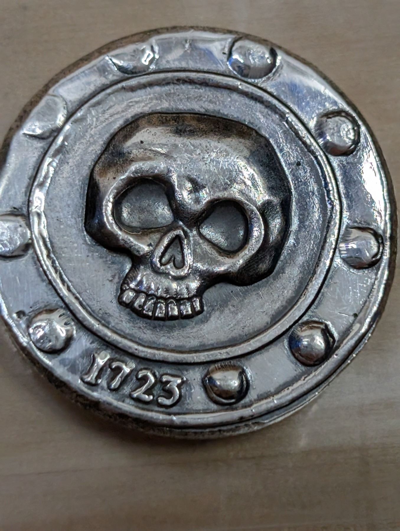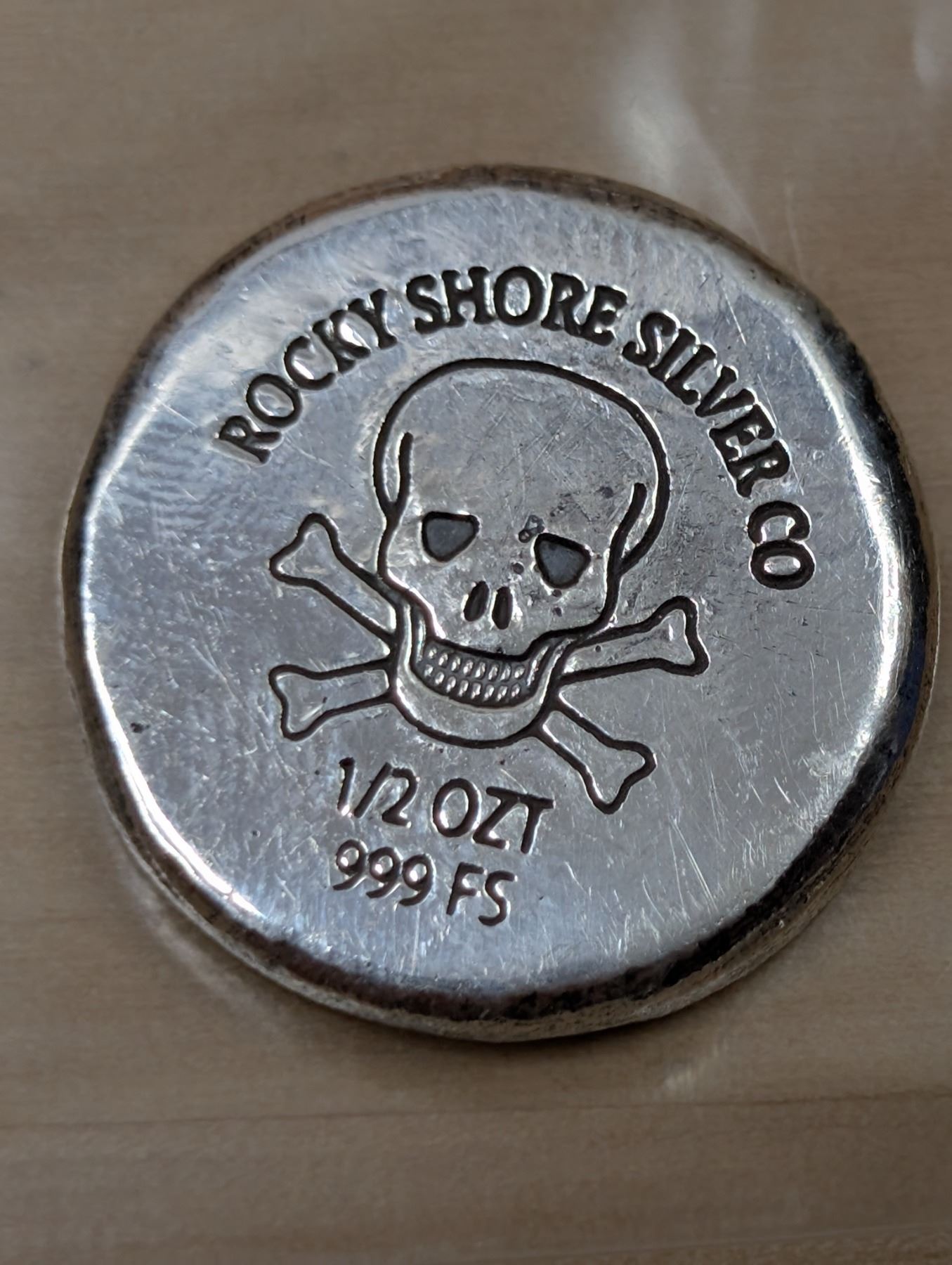 The 1/2 oz Skull silver round is made from .999 fine silver and typically features a design centered around a skull, often symbolizing themes like mortality, rebellion, or gothic style. These rounds are popular with collectors who appreciate unique and edgy designs. The value is determined by the current silver price and demand for the specific skull design.